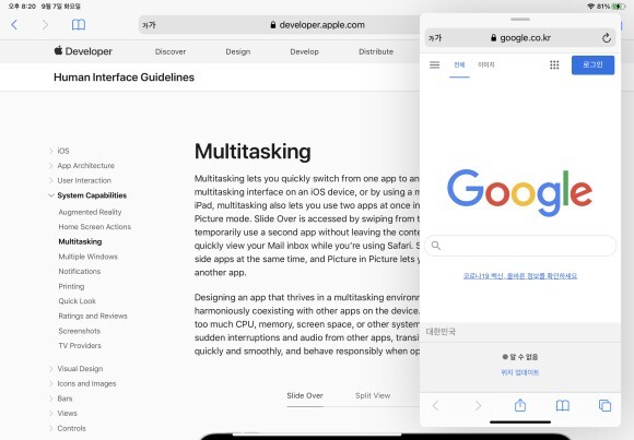 1. 스플릿 뷰 작동 시에 인터페이스가 잘 적응될 수 있도록 디자인해야 한다.