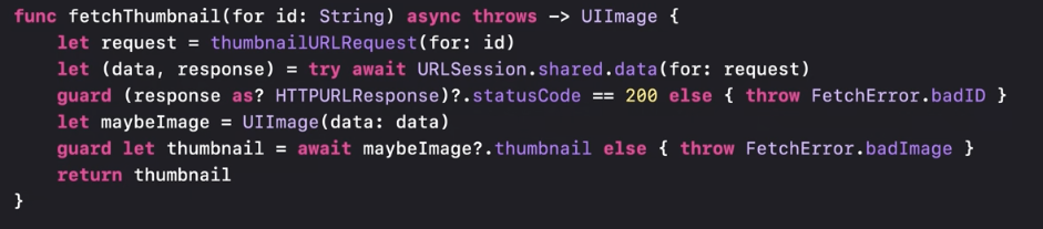 그리하여 Swift는 기존의 복잡함을 덜어내고 async라는 키워드를 함수옆에 달아 간단하게 해결하였습니다.