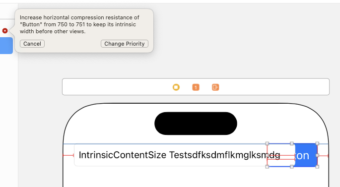 결국 우리는 Compression Resistance Priority에서 버튼이 더 큰 값을 가져야합니다.(Priority는 값이 클수록 우선순위가 높습니다.)